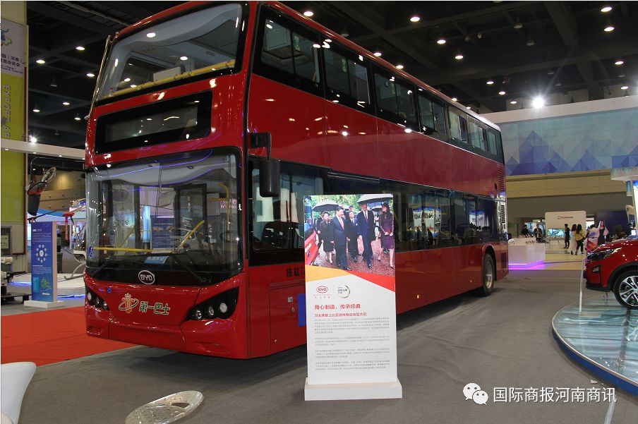 在安阳智能装备展区,一辆双层大巴格外引人注目,与会嘉宾纷纷上车参观。近几年,安阳一直在大力推进产业结构转型升级并取得了积极进展,一部分新能源汽车及通航设备企业落户安阳,为安阳的转型发展提供了动力和活力。安阳的高端装备产业主要集中在新能源汽车及零部件、通用航空、智能机器人等高端装备制造业和现代农业两大产业板块。展区内共有安阳比亚迪实业有限公司、哈工大机器人集团(安阳)有限公司、安阳壮龙、安阳全丰、安阳东飞、河南啸翔等6家企业参展,展出的是世界首款一级踏步纯电动双层大巴、云轨列车静态模型、智能机器人、无人机、直升机等。2015年10月21日,比亚迪制造的全球首台零排放纯电动双层大巴在英国伦敦兰开斯特宫亮相,在集团总裁王传福陪同下,习近平主席、英国剑桥公爵威廉王子以及凯特王妃一起登上了这台纯电动双层大巴进行参观。